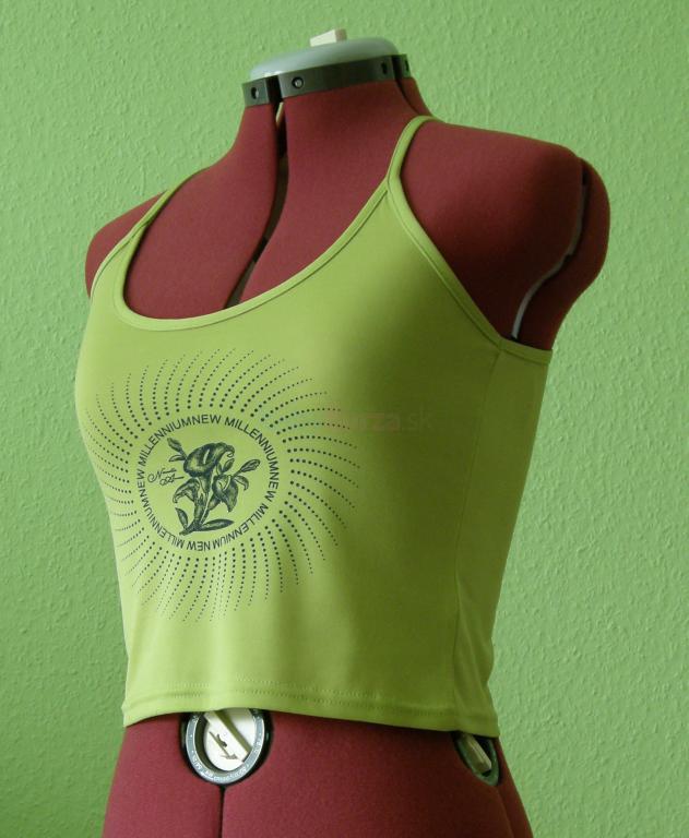 Limetkovozelené tielko do pása, so športovým riešením prieramkov, vpredu modrý nápis Millenium. Super stav. Veľkosť S-M. Pošta doporučený list alebo Zásielkovňa 2,5€.