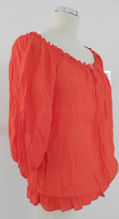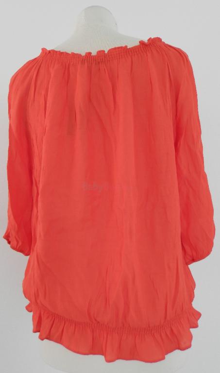 Ľahký, vzdušný, 3/4 rukávy, v páse na gumu. Sýta, koralová farba.